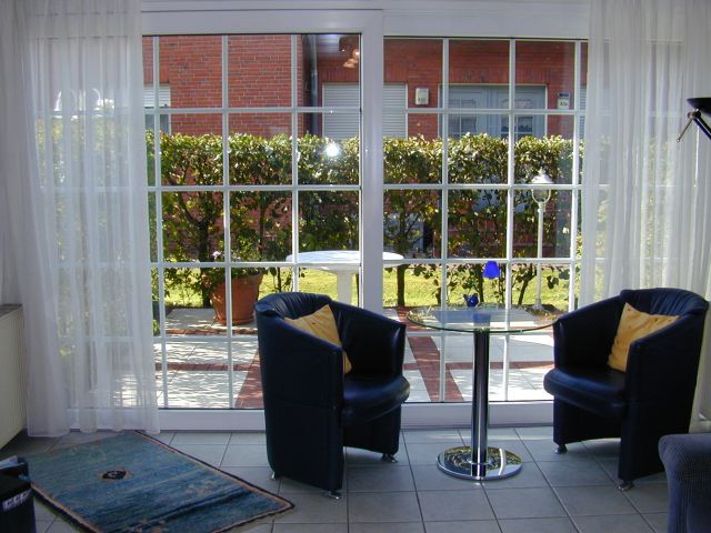 ist ca. 48 qm groß und hat einen separaten Eingang. Sie verfügt über einen Wohn-/Schlafraum mit Küchenzeile und Esstisch, ein zusätzliches Schlafzimmer, Diele und Bad mit Dusche. Alle Räume können verdunkelt werden.