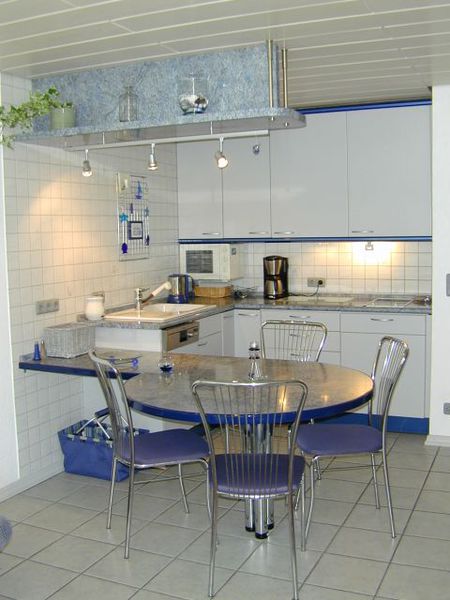 Auf der Terrasse finden Sie ausreichend Platz, sie ist mit Bestuhlung und Sonnenschirm ausgestattet. Die Küchenzeile verfügt u.a. über eine Spülmaschine und eine Mikrowelle. Ferner stehen